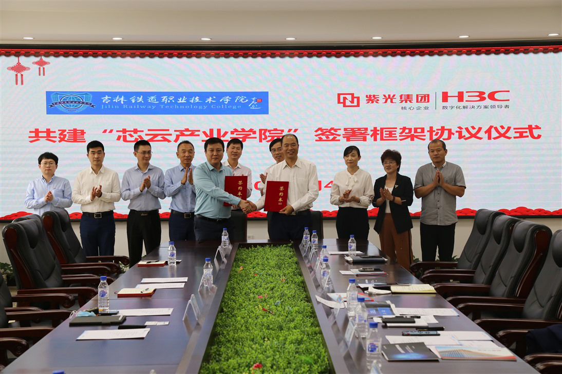 9月4日下午,清华紫光旗下新华三集团副总裁李子威率队访问我校,与我校签署产教融合校企合作框架协议。校长曹炳志,新华三集团副总裁李子威代表双方签字。副校长田雷,副校长张辉,产教融合中心、信息化中心、计划财务处、资产管理中心、质量监控处、城市轨道交通学院、教务处、科研处相关负责人,以及新华三集团吉林代表处相关负责人共同参加签约仪式。