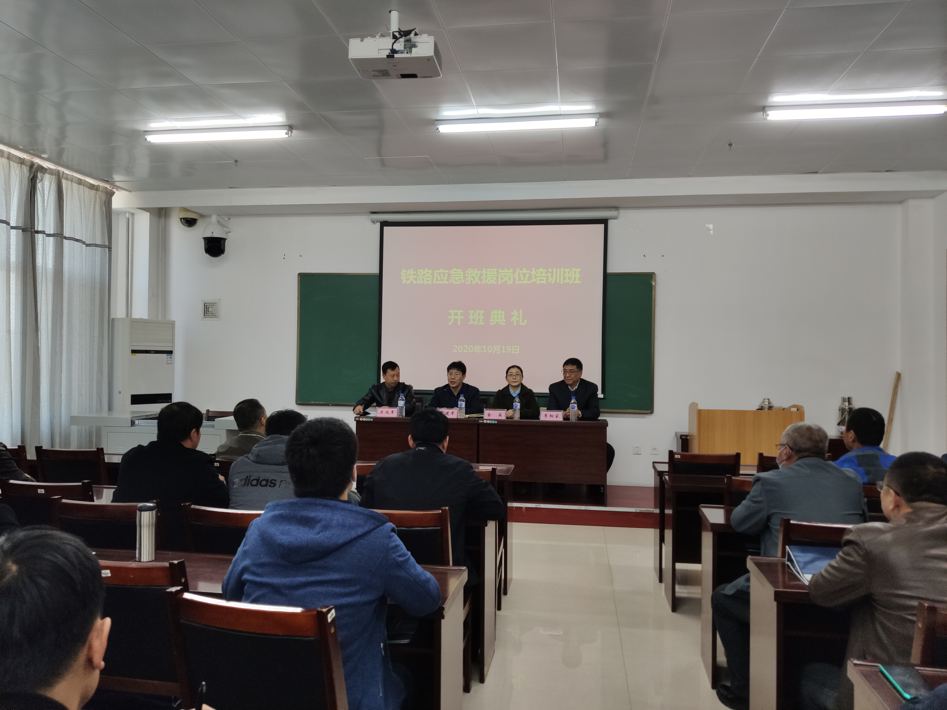 2020年10月19日,吉林铁道职业技术学院-吉林市祥隆铁路救援产业学院首期铁路应急救援岗位技术培训班开班仪式在学校培训中心隆重举行。参加开班仪式的有培训中心主任王建军,铁道机车学院院长金晶,吉林市祥隆铁路救援技术开发有限公司董事长李相家、副总经理董立军,培训班全体教师,神华集团及陕煤集团的54名学员,仪式由培训班班主任关成军老师主持。