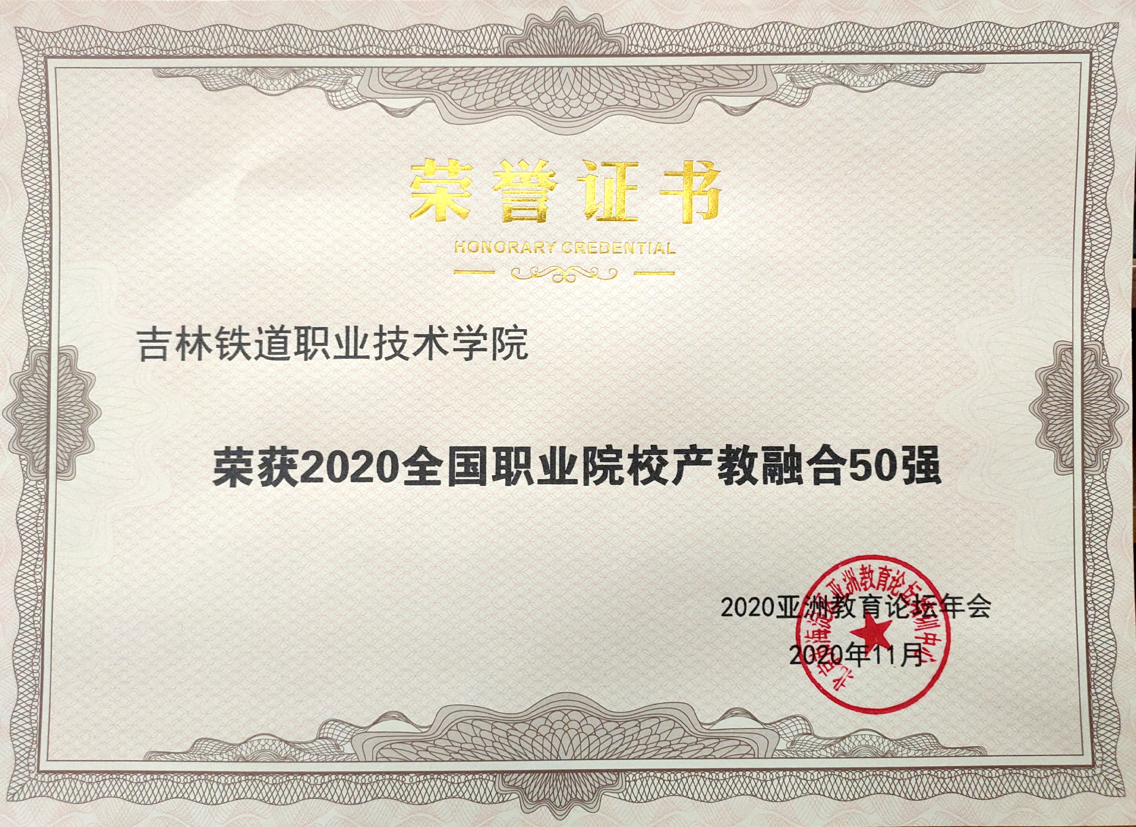 热烈祝贺我校荣获“2020全国职业院校产教融合50强”