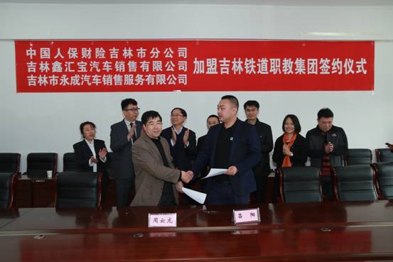 2016年3月25日,我院与中国人保财险吉林市分公司、吉林鑫汇宝汽车销售服务有限公司、吉林市永成汽车销售服务有限公司等三家企业举行了校外实习基地及加盟职教集团签约仪式。出席仪式的企业单位人员有中国人保财险吉林市分公司杨旭副总经理、人保财险产品线经理周刚、人保财险直属公司经理刘钟阳、人保财险直属公司副经理于鹏程、吉林鑫汇宝汽车销售服务有限公司总经理张洋、吉林市永成汽车销售服务有限公司总经理吕阳等,学院院长周云龙教授、学院副院长王华教授以及学院实训与教育技术中心、教务处、经济管理系、汽车工程系的负责人等。