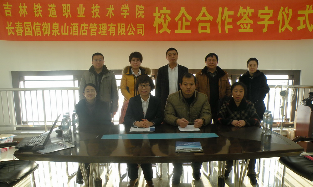在签字仪式上,刘本基书记代表吉林铁道职业技术学院同长春国信集团御泉山酒店管理有限公司签署了校企合作协议。
